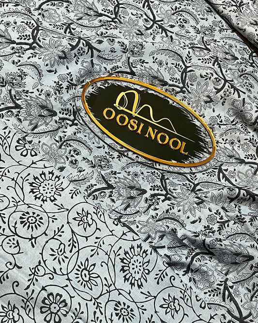 Ajrakh Print Mulmul Cotton Saree (Grey)
