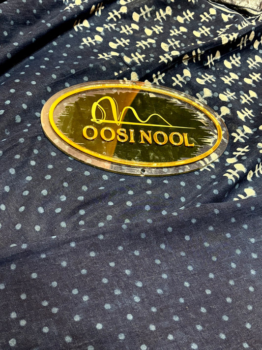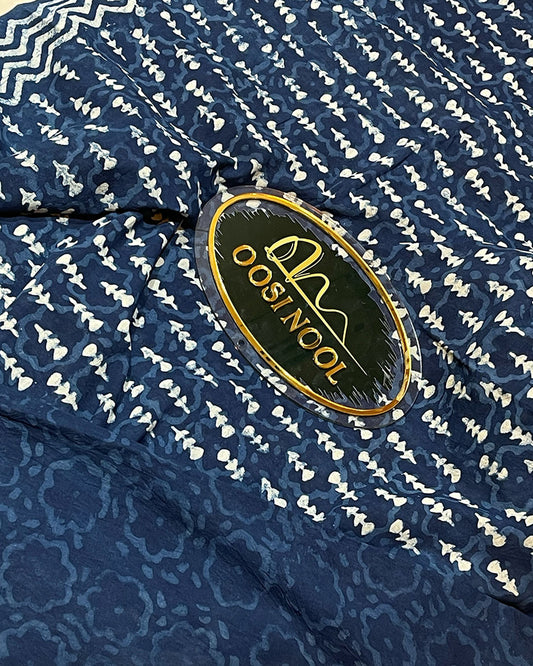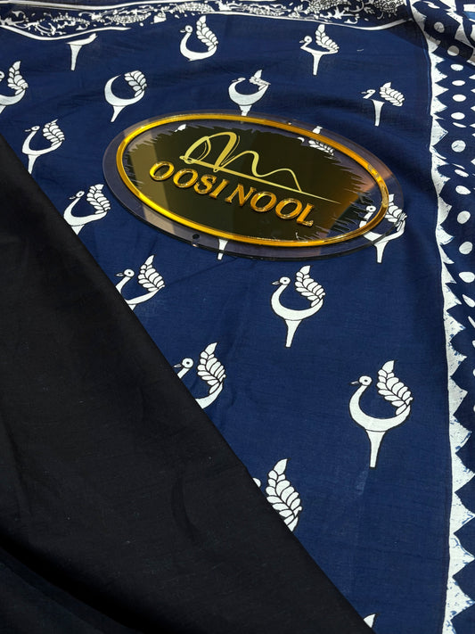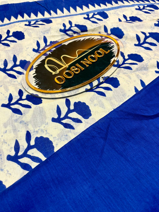 Ajrakh Print Mulmul Cotton Saree (Navy Blue Floral)