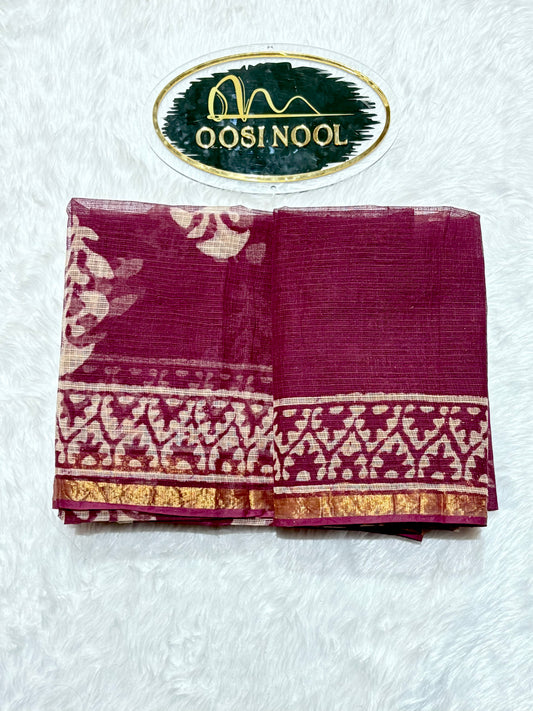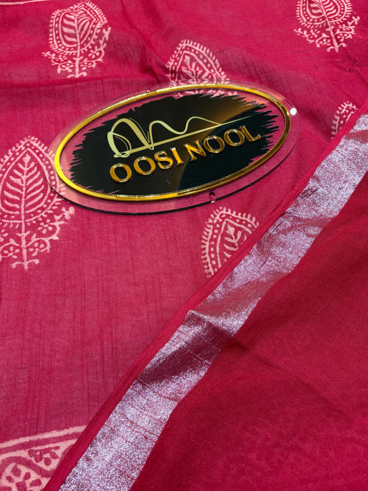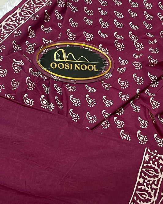 Ajrakh Print Mulmul Cotton Saree (Dark Magenta)