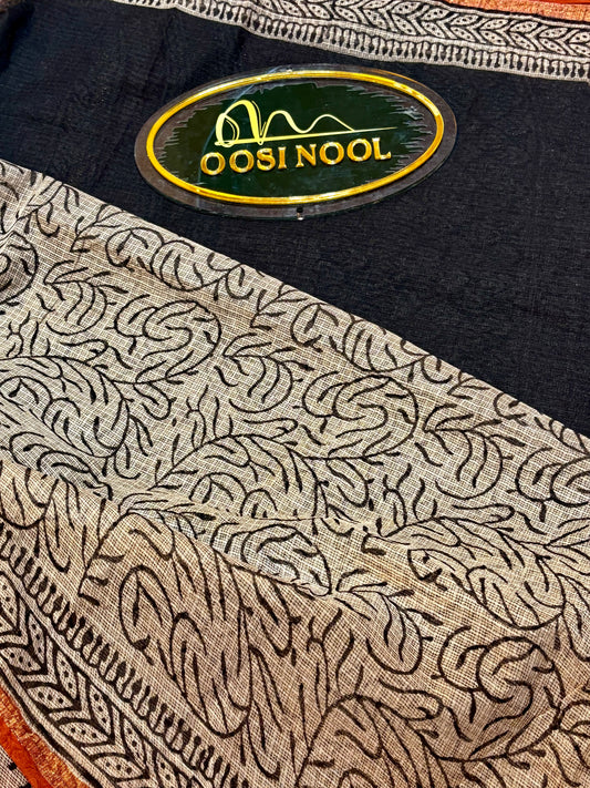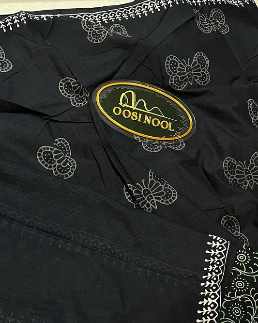 Ajrakh Print Mulmul Cotton Saree (Black)