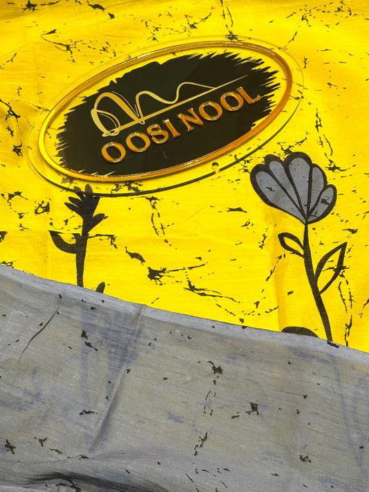 Floral Design Navy Blue Cotton Saree With Yellow Blouse