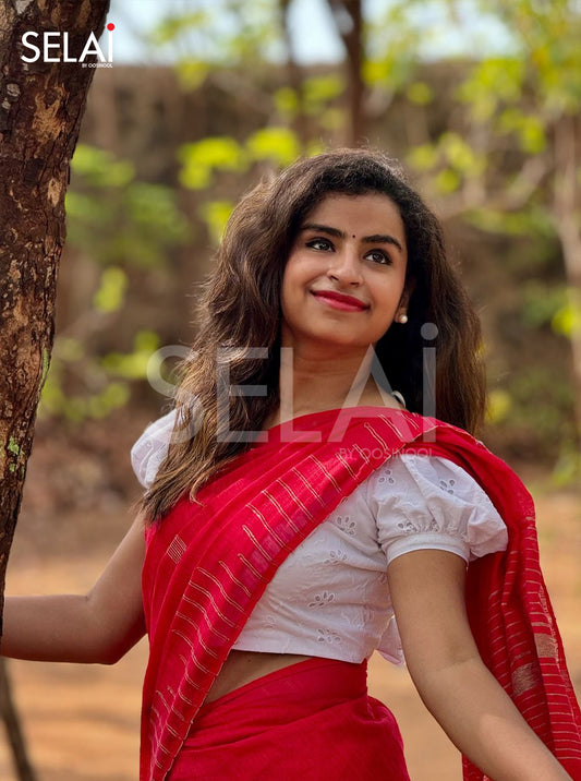Gopuram Cotton Saree (Red)