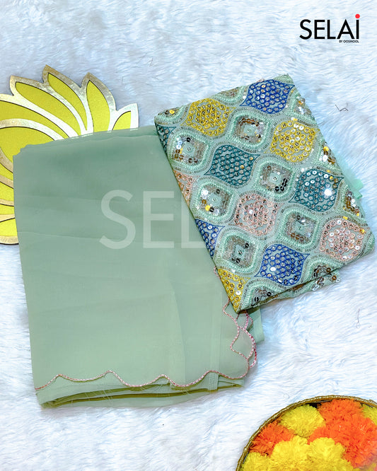 Georgette Scallop Saree (Green)