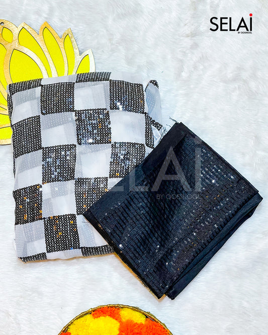 Black and white Georgette with sequins