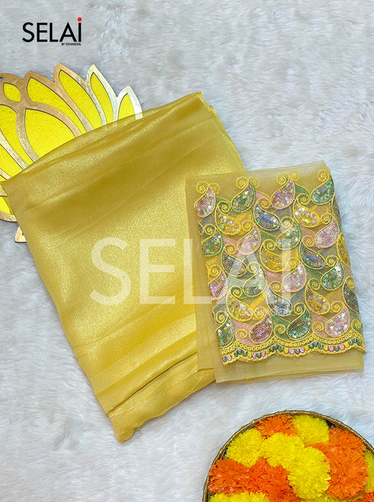 Shimmer Georgette Saree (Yellow)