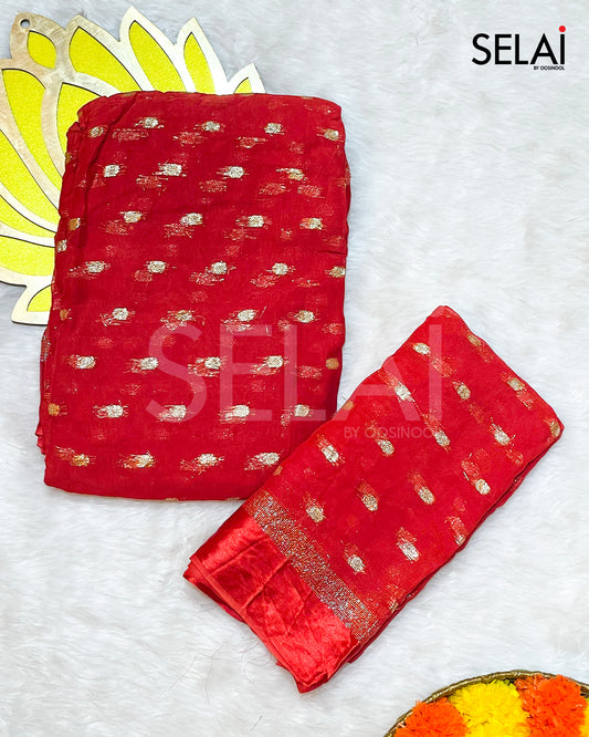 Viscose Georgette with Silk Buttas (Red)