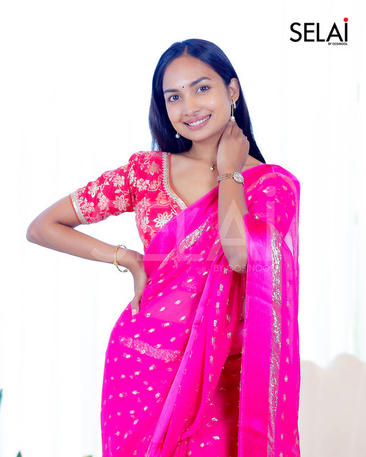 Viscose Georgette with Silk Buttas (Pink)