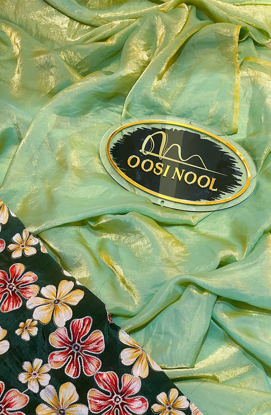 Pastel Crushed Tissue Saree with Gold Zari Border (Green)