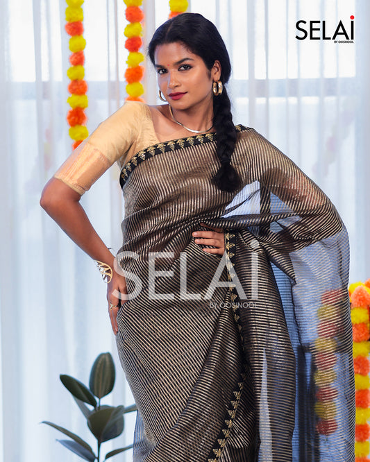 Zari striped Tissue Ready to Wear Saree (Navy)