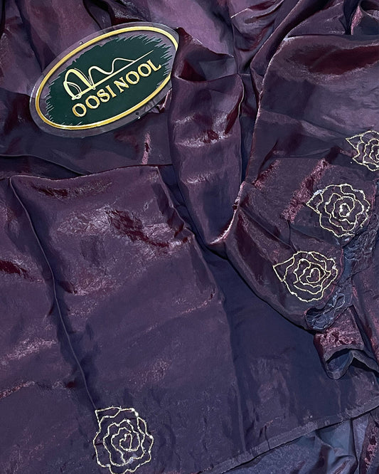 Glass Organza with Embroidered Beads (Deep Maroon)