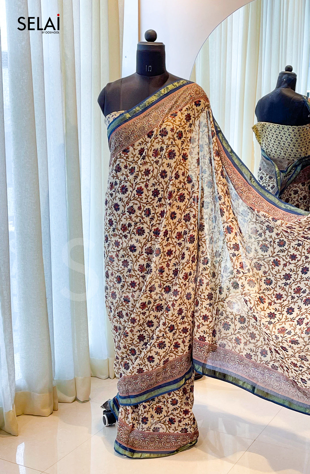 - Blouse Fabric: Ajrakh Print cotton (Unstitched)