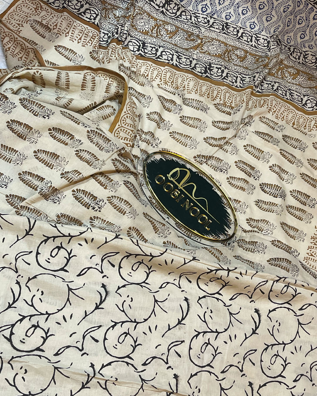 - Blouse Fabric: Ajrakh Print Mulmul cotton (Unstitched)