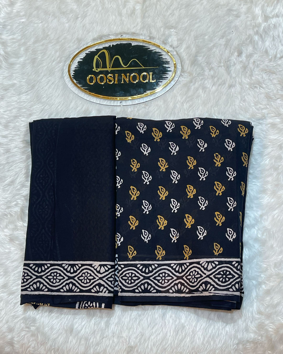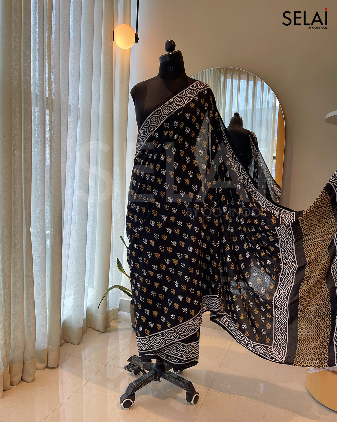 - Blouse Fabric: Ajrakh Print Mulmul cotton (Unstitched)