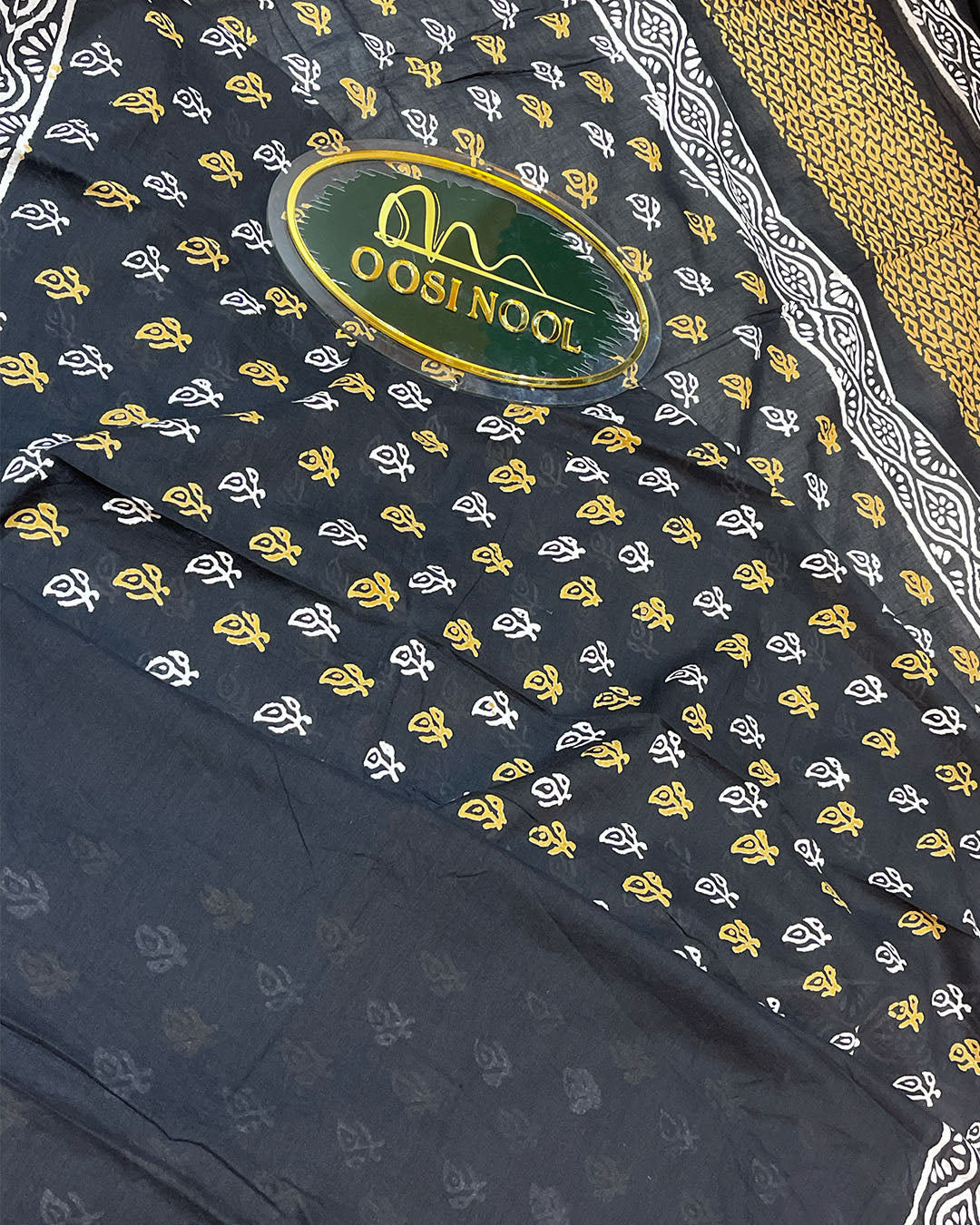 Ajrakh Print Mulmul Cotton Saree (Black)