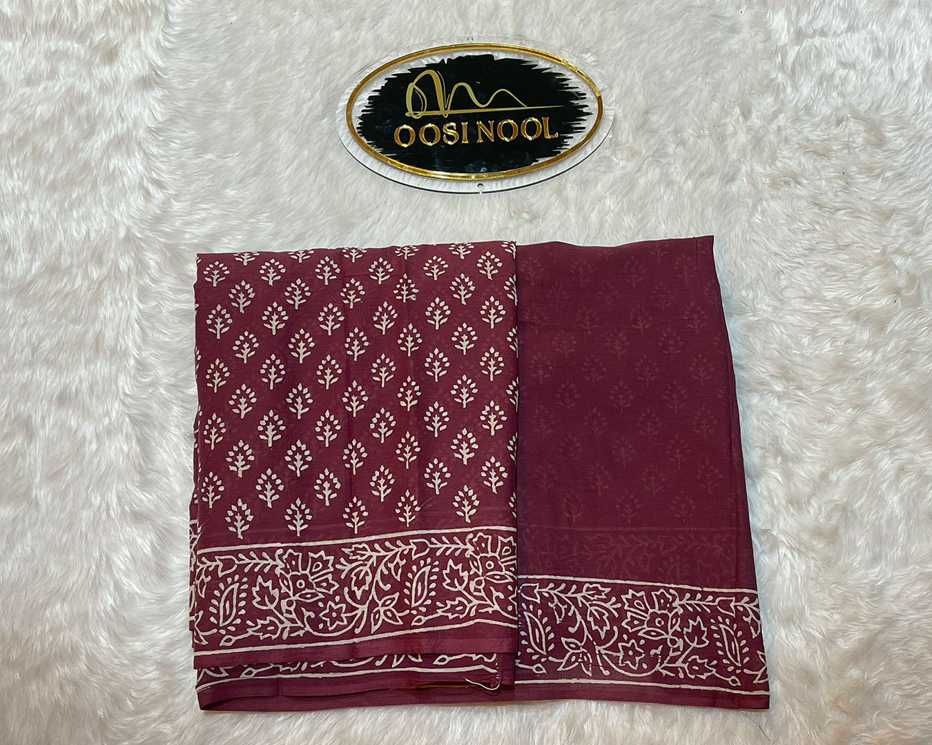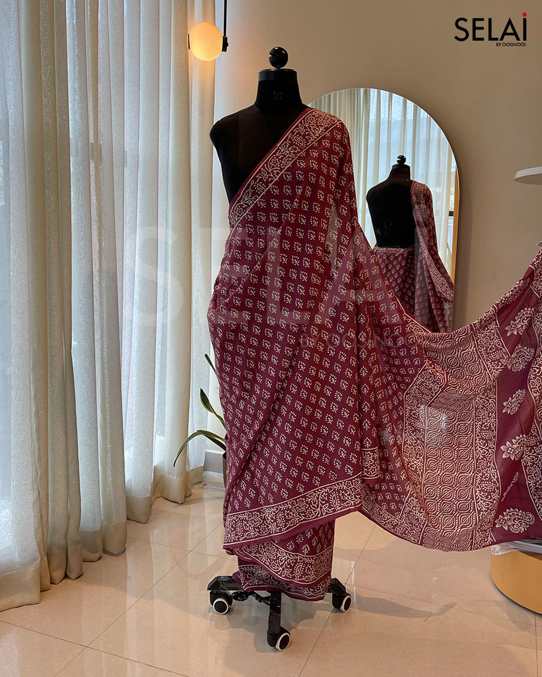 - Blouse Fabric: Ajrakh Print Mulmul cotton (Unstitched)