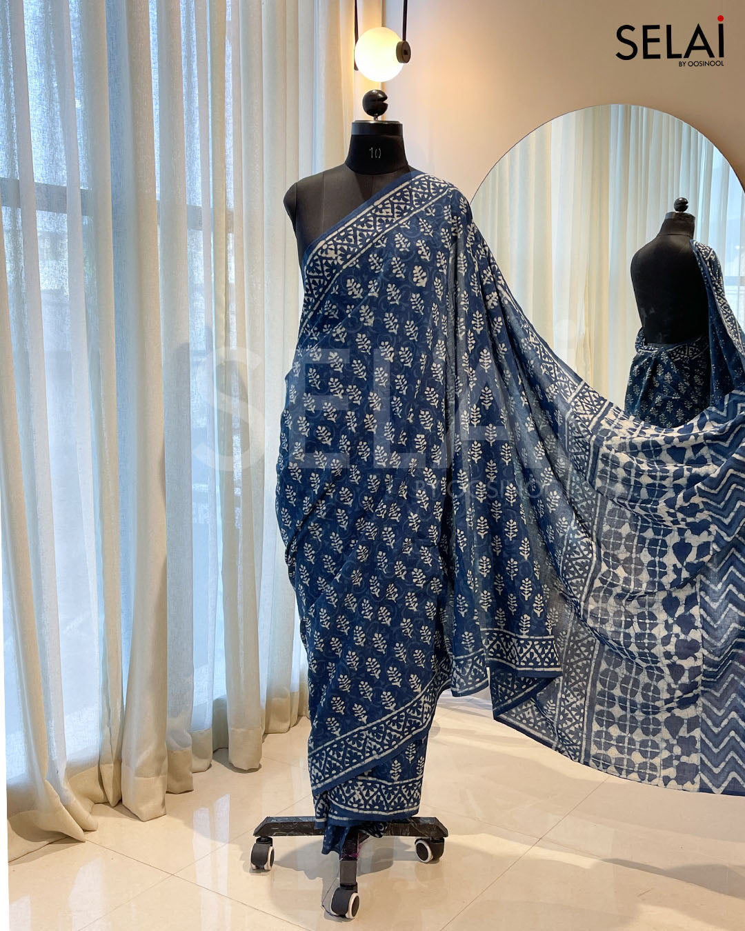 - Blouse Fabric: Ajrakh Print Mulmul cotton (Unstitched)