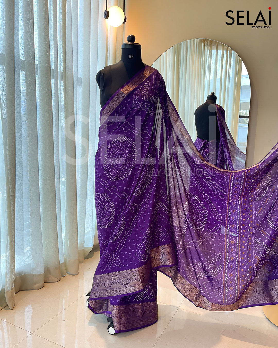 A burst of tradition in every fold, this Bandhani-printed georgette saree blends heritage with light, breezy comfort. Effortlessly elegant and perfect for festive or everyday charm.