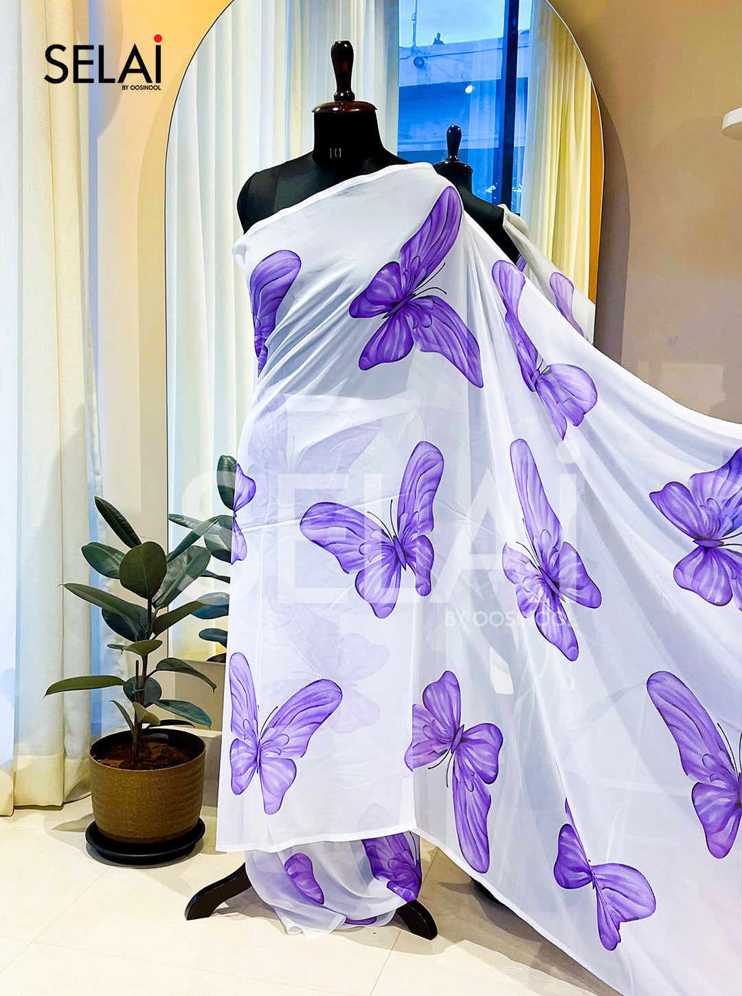 Embrace the charm of nature-inspired elegance with this whimsical butterfly saree.