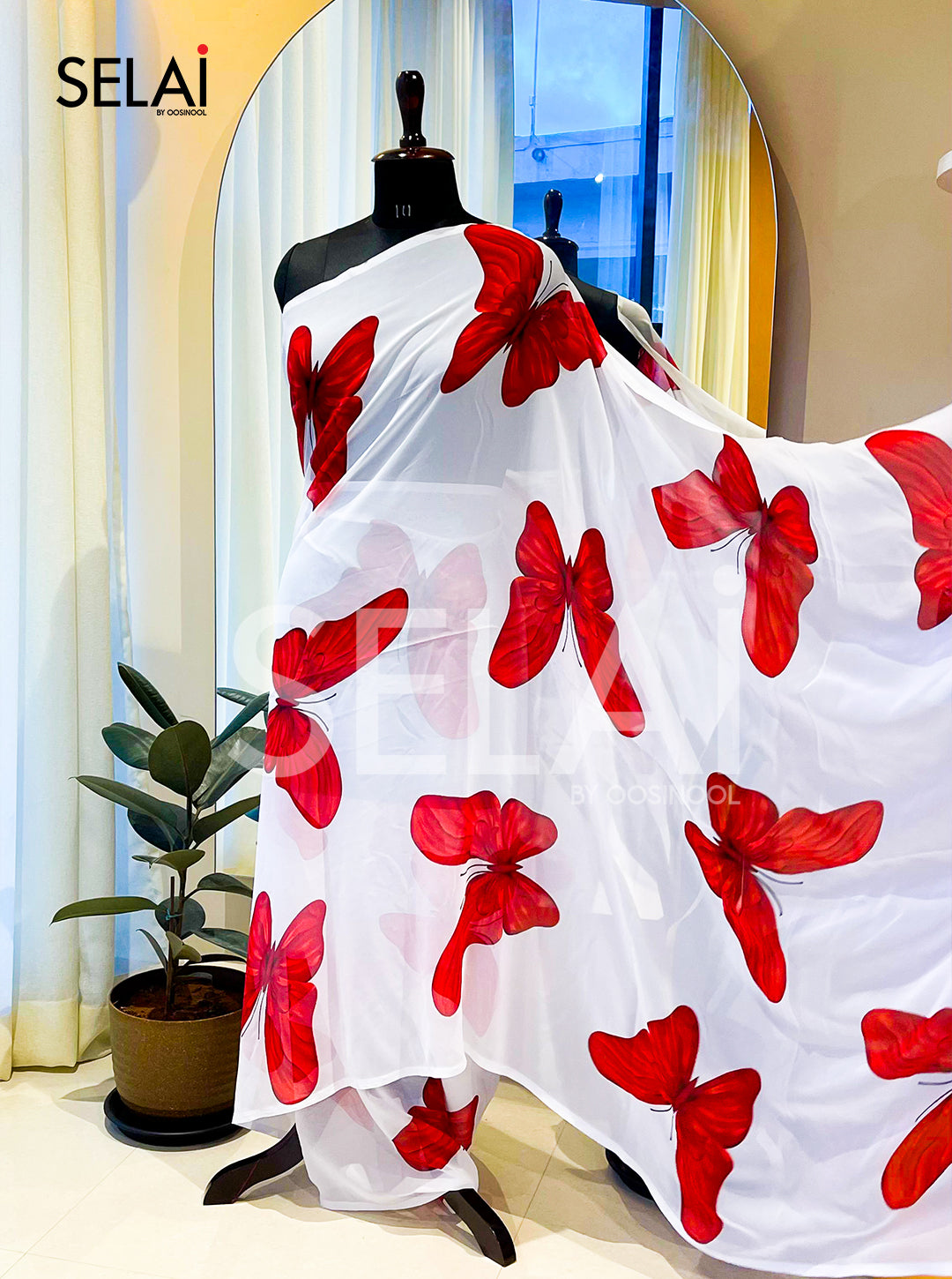 Embrace the charm of nature-inspired elegance with this whimsical butterfly saree.