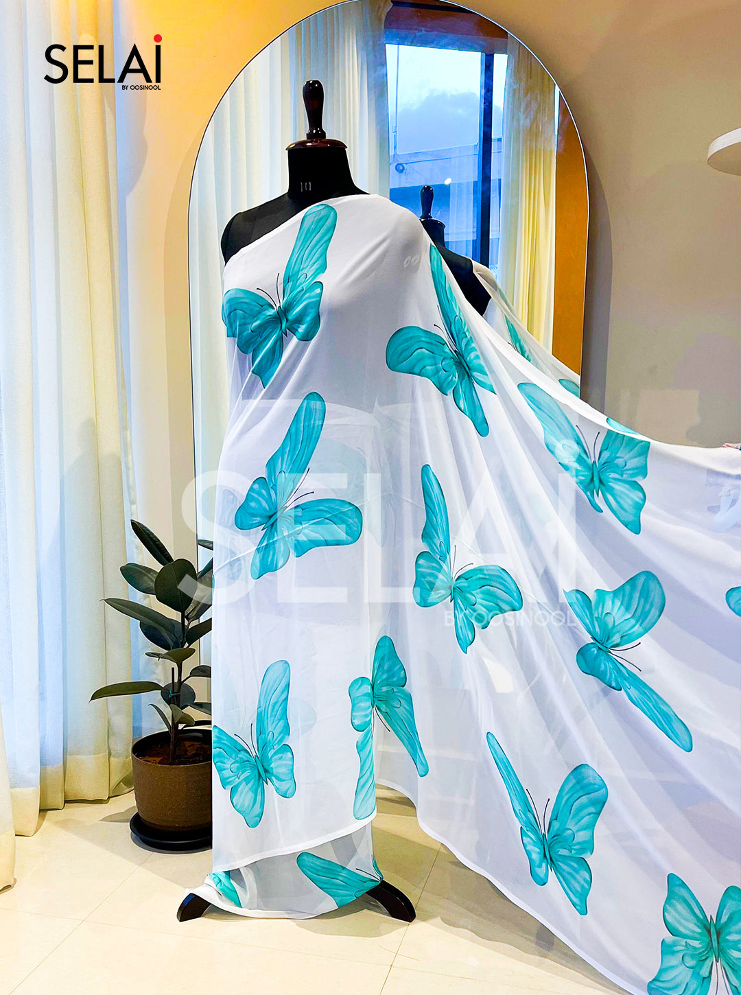 Embrace the charm of nature-inspired elegance with this whimsical butterfly saree.