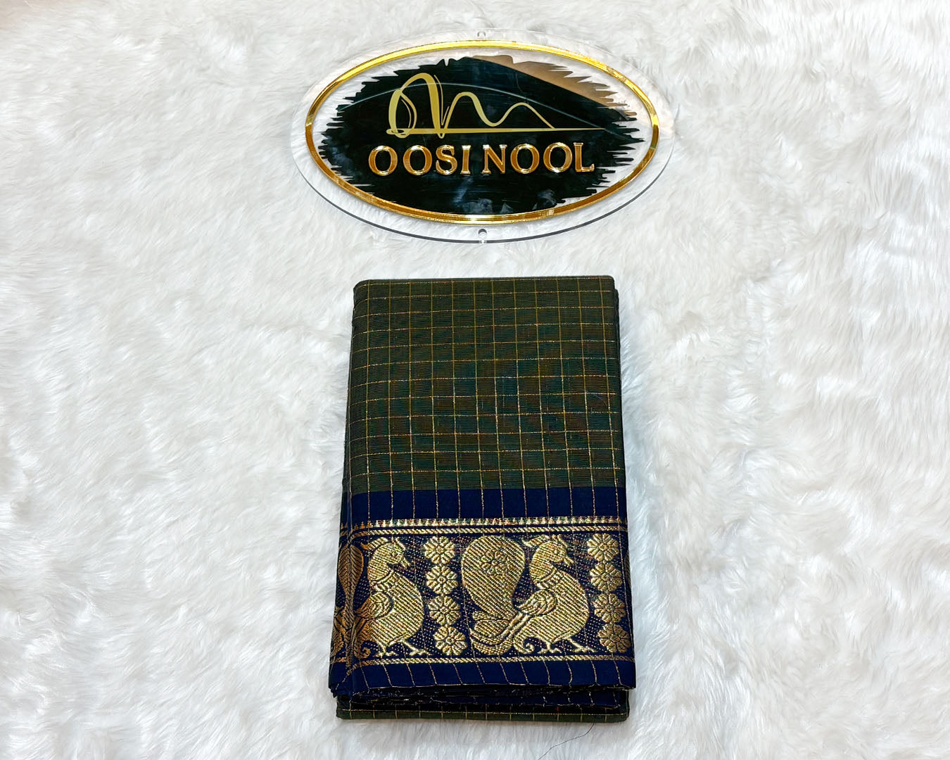 Checked Chettinad Cotton Saree (Olive Green with Navy Blue Border)