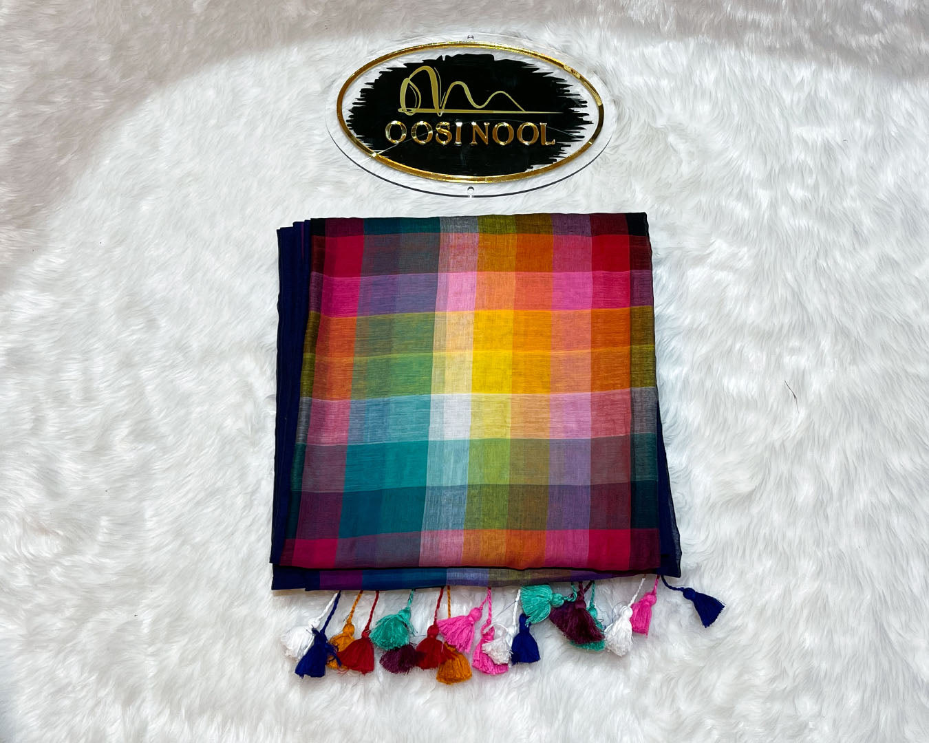 Madras Checks Mulmul Cotton Saree (Navy Blue)