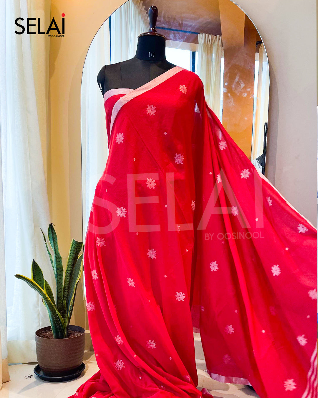- Blouse Fabric: Self-color Mulmul cotton (Unstitched)
