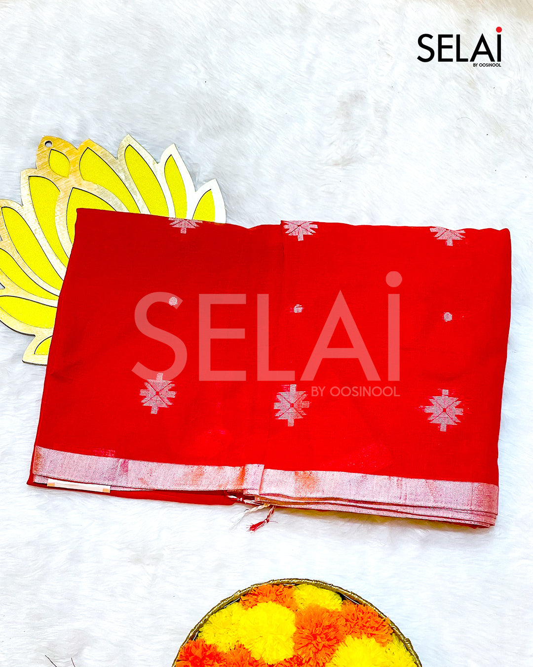 Redefine everyday elegance with our Mulmul Cotton Woven Saree, crafted from ultra-soft mulmul cotton. This saree features subtle geometric woven motifs that add a touch of understated charm, making it ideal for office wear, casual outings, or relaxed gatherings.