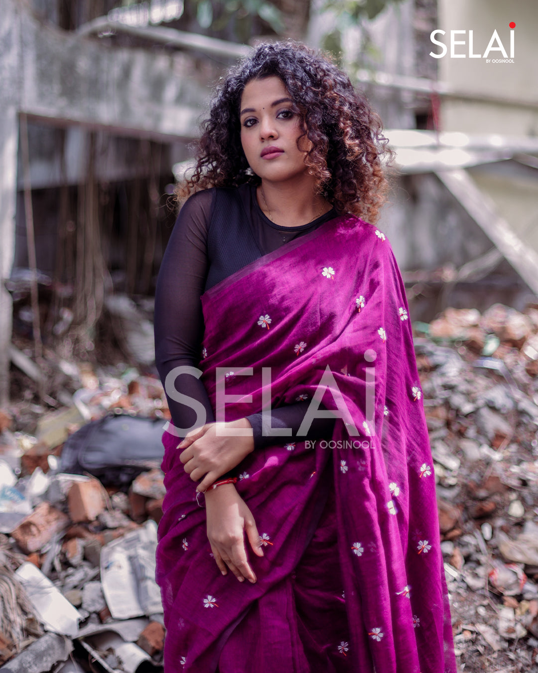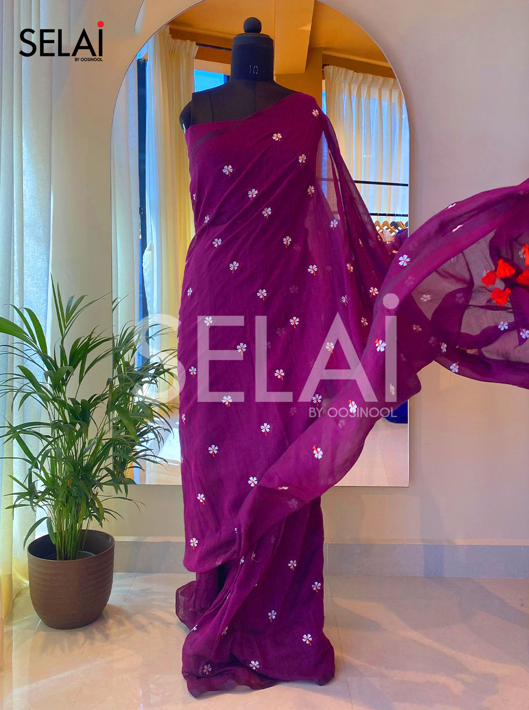 Embrace effortless summer elegance with our ready-to-wear mulmul cotton saree. Crafted from ultra-soft, breathable cotton, it keeps you cool and comfortable even on the warmest days. The delicate floral embroidery adds a graceful charm, while contrasting tassels bring a playful, stylish touch. Whether for casual outings, brunches, or relaxed celebrations, this saree is your ideal companion for summer chic.