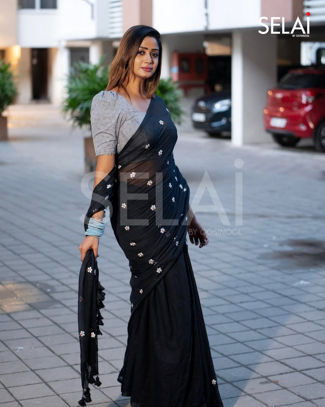 Embrace effortless summer elegance with our ready-to-wear mulmul cotton saree. Crafted from ultra-soft, breathable cotton, it keeps you cool and comfortable even on the warmest days. The delicate floral embroidery adds a graceful charm, while contrasting tassels bring a playful, stylish touch. Whether for casual outings, brunches, or relaxed celebrations, this saree is your ideal companion for summer chic.