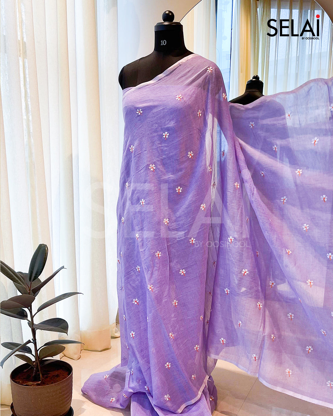 Embrace effortless summer elegance with our ready-to-wear mulmul cotton saree. Crafted from ultra-soft, breathable cotton, it keeps you cool and comfortable even on the warmest days. The delicate floral embroidery adds a graceful charm, while contrasting tassels bring a playful, stylish touch. Whether for casual outings, brunches, or relaxed celebrations, this saree is your ideal companion for summer chic.