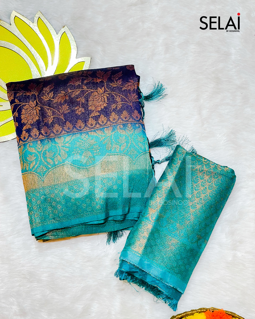 - Blouse Fabric: Contrast semi-silk (Unstitched)