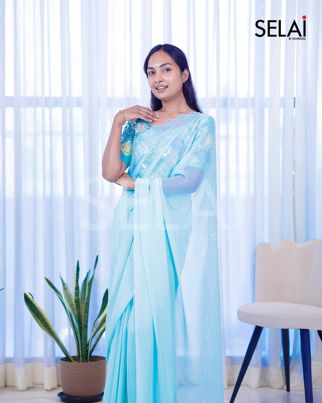 Elevate your everyday elegance with our Plain Georgette Saree, featuring a delicate scallop embroidery along the edges for a refined touch. Crafted from soft, flowing georgette fabric, this saree offers a graceful drape that’s perfect for casual outings, workdays, or intimate celebrations. Its understated charm and versatile design make it a timeless addition to your wardrobe.