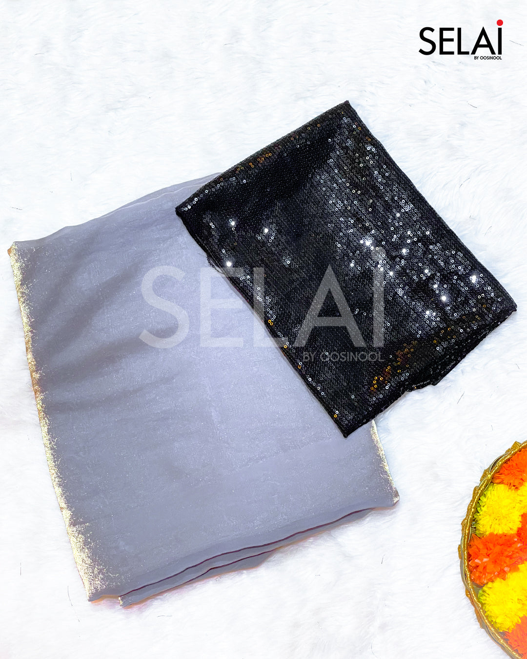 - Blouse Fabric: Black sequin (Unstitched)