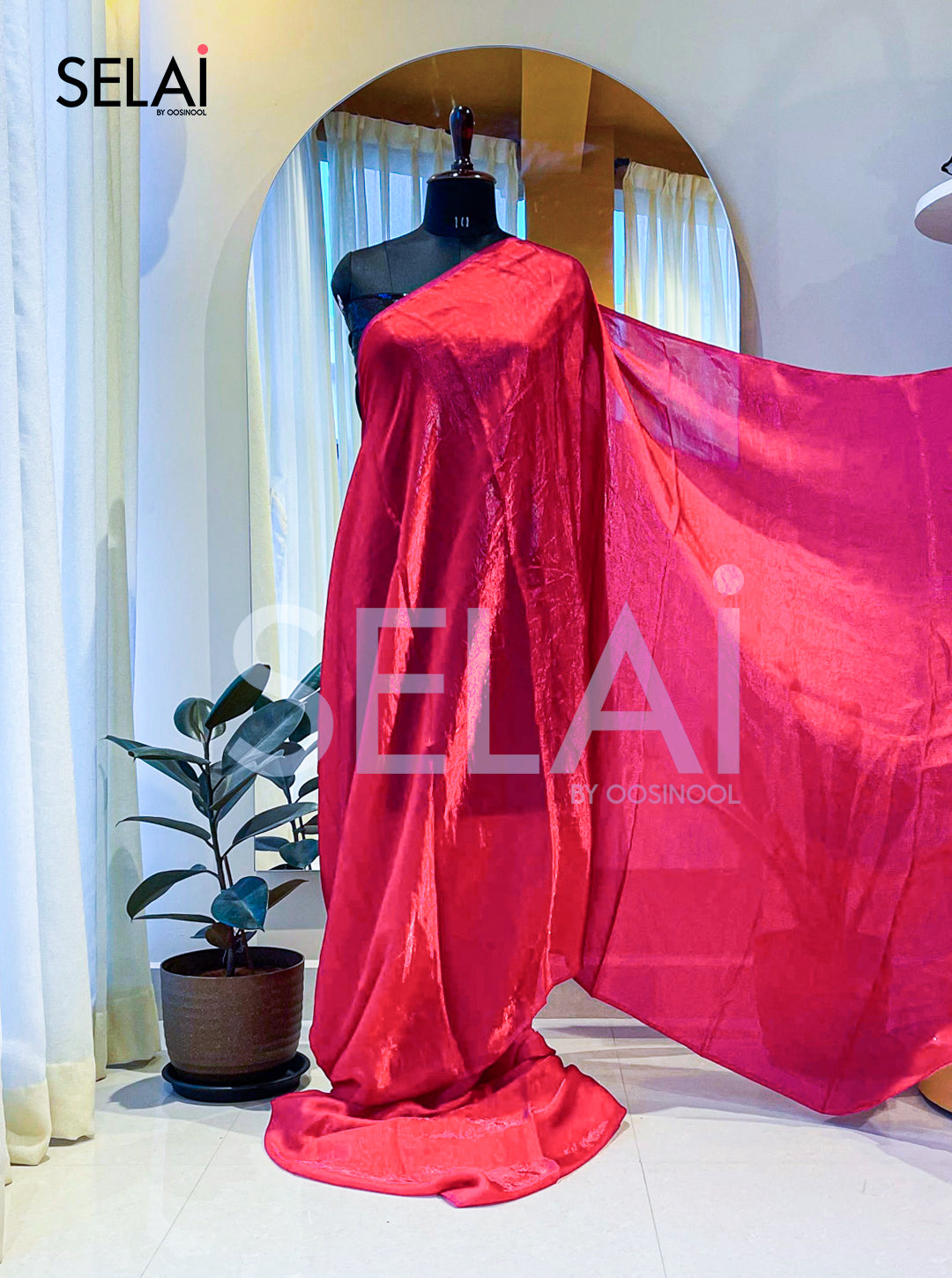 Elevate your style with our Glass Organza Saree, featuring a captivating double-shade shine that exudes sophistication. The lightweight, semi-sheer fabric adds a touch of ethereal beauty, making it an ideal choice for weddings, festive occasions, and evening celebrations.