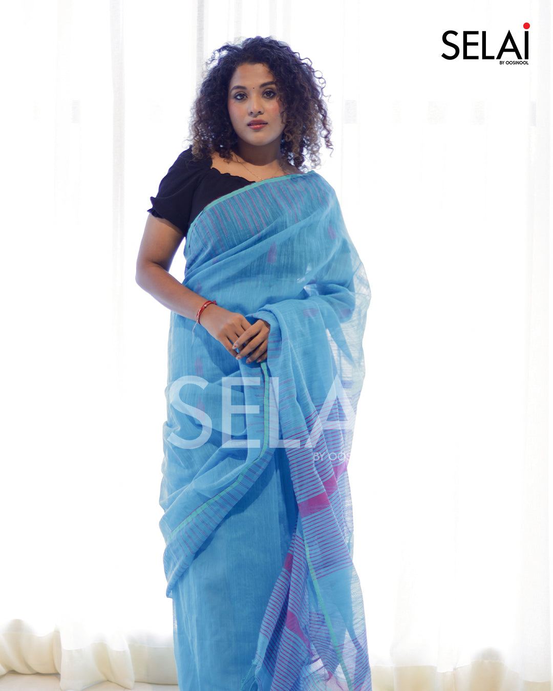 Step into a world of understated elegance with our Gopuram cotton saree. Featuring minimal embroidered lines inspired by the architectural grandeur of gopurams, this saree strikes the perfect balance between sophistication and simplicity. Lightweight and breathable, it offers all-day comfort, making it ideal for both work and casual gatherings