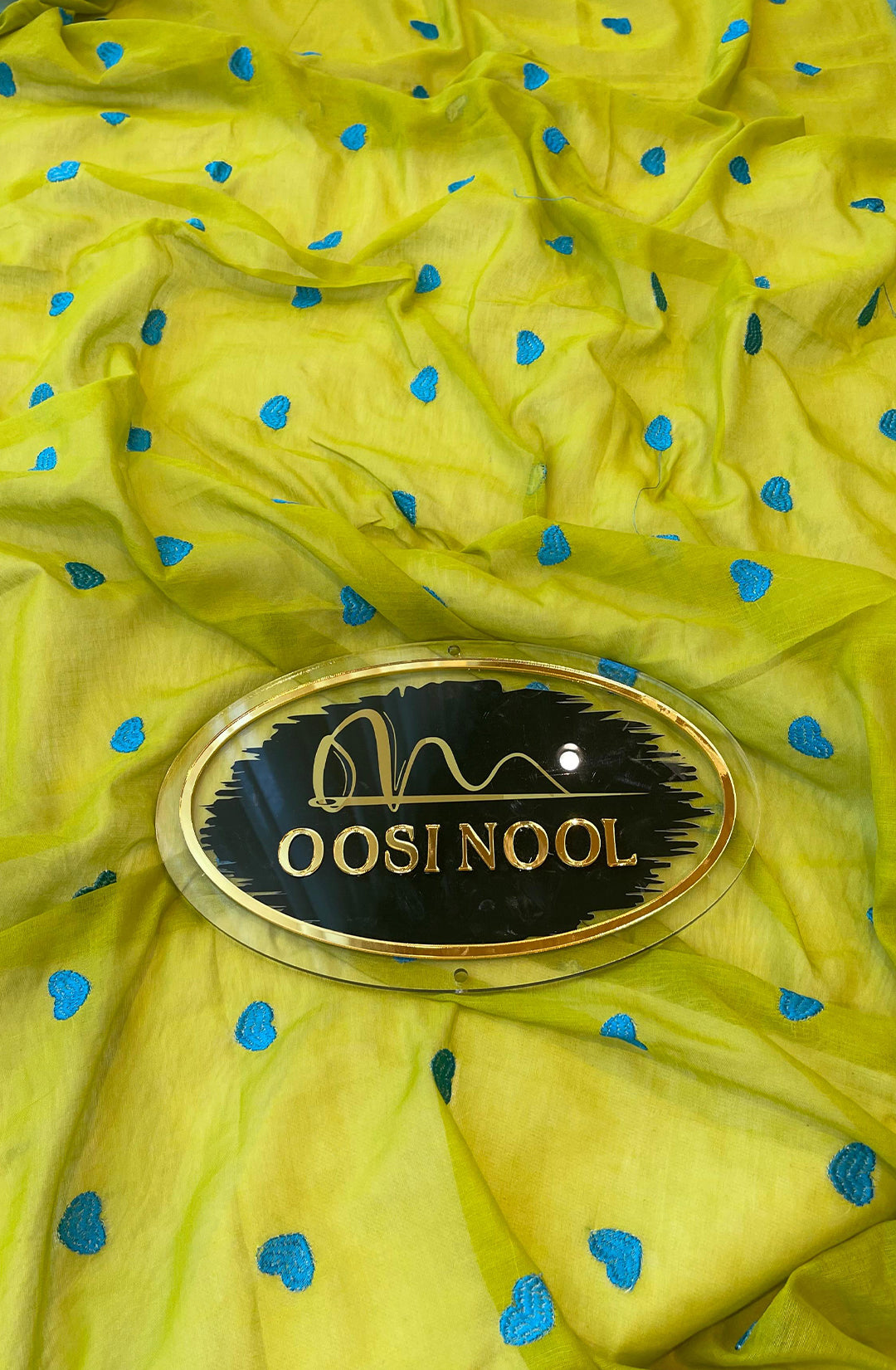 Playful charm meets everyday comfort in this mulmul cotton saree, adorned with embroidered contrast hearts and delicate threadwork. The soft, breathable fabric drapes effortlessly, while tassel details add a fun, carefree touch. Perfect for casual outings or adding a hint of whimsy to your office wardrobe.