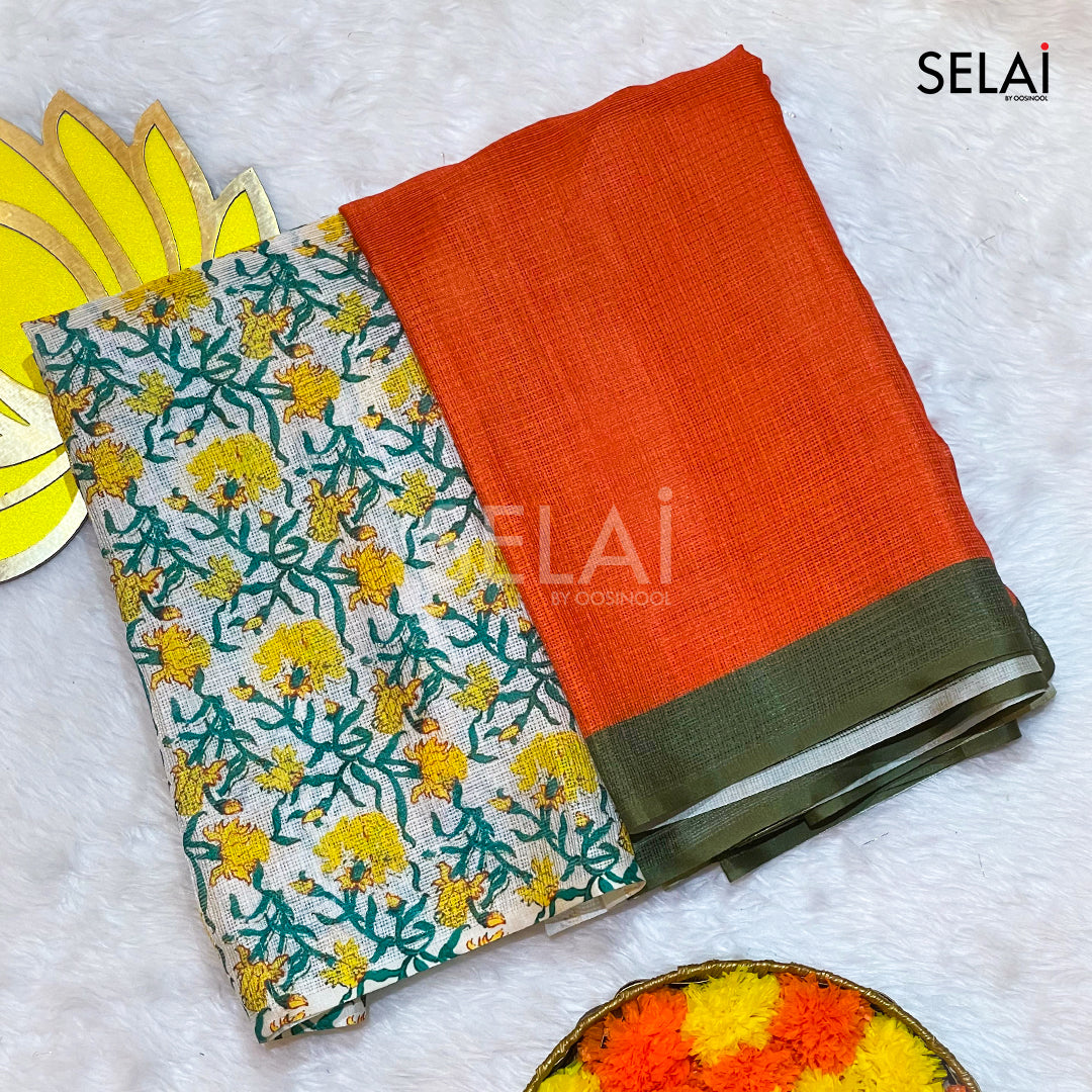 Kota Cotton Saree (Orange)