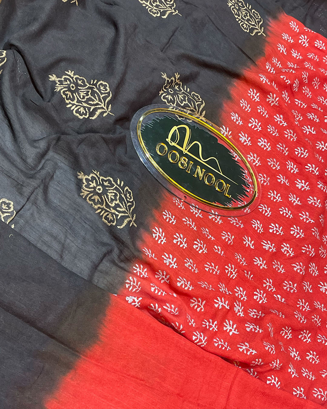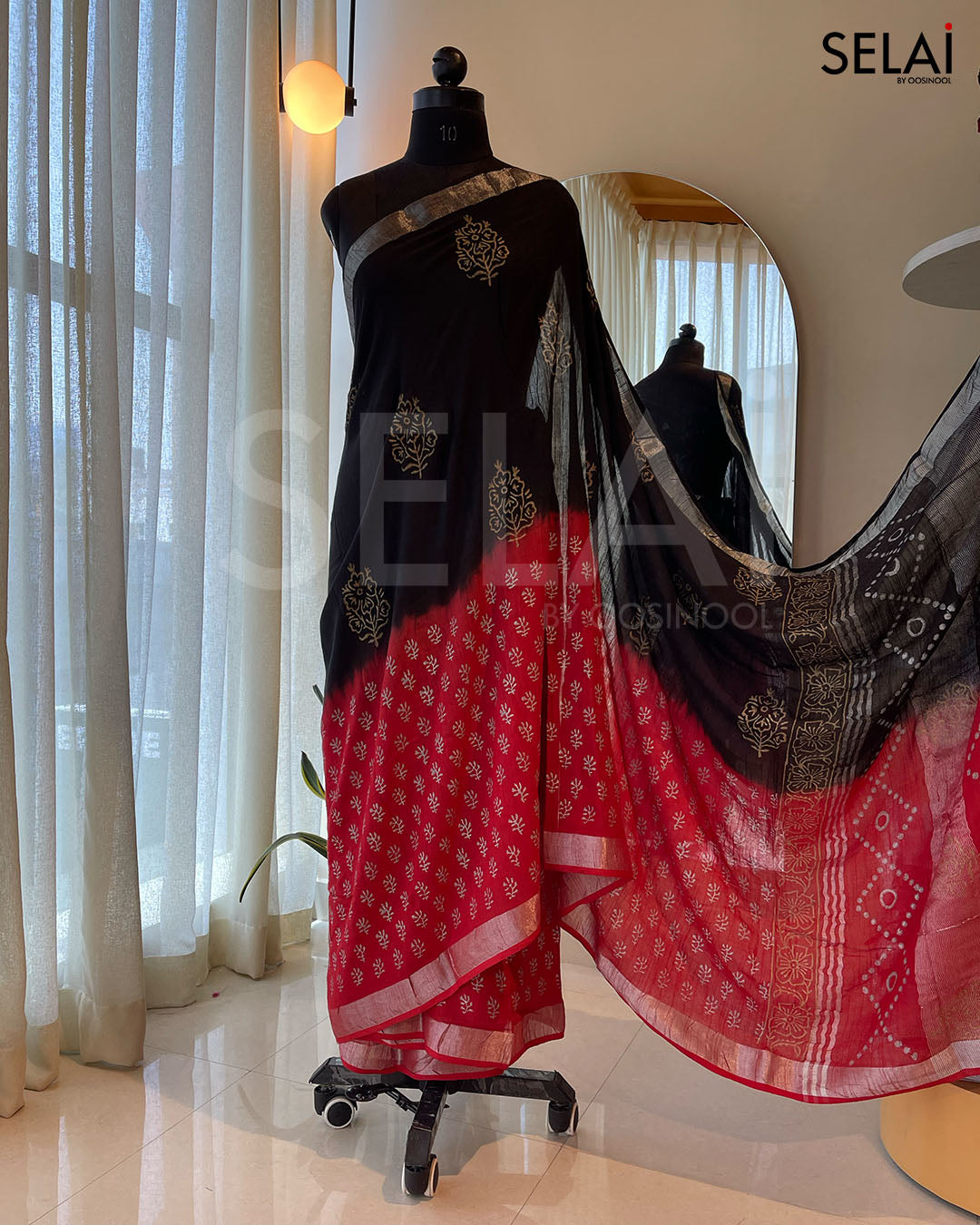 Soft on the skin and easy to drape, this red with black Linen cotton saree is made for daily wear. The hand-block printed floral design keeps it classic. Light, airy, and fuss-free — perfect for your 9 to 5 or a stroll to the market.