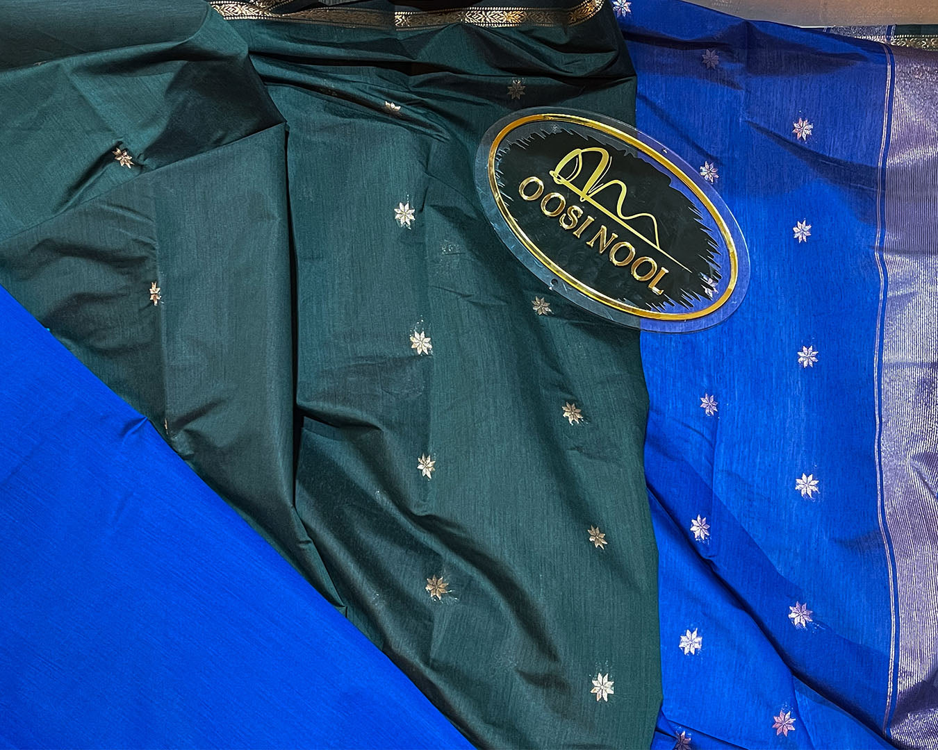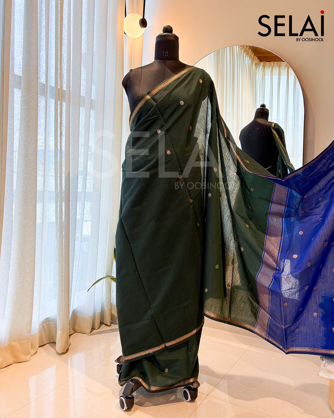 Mangalagiri Cotton Saree (Dark Green with Dark Blue)