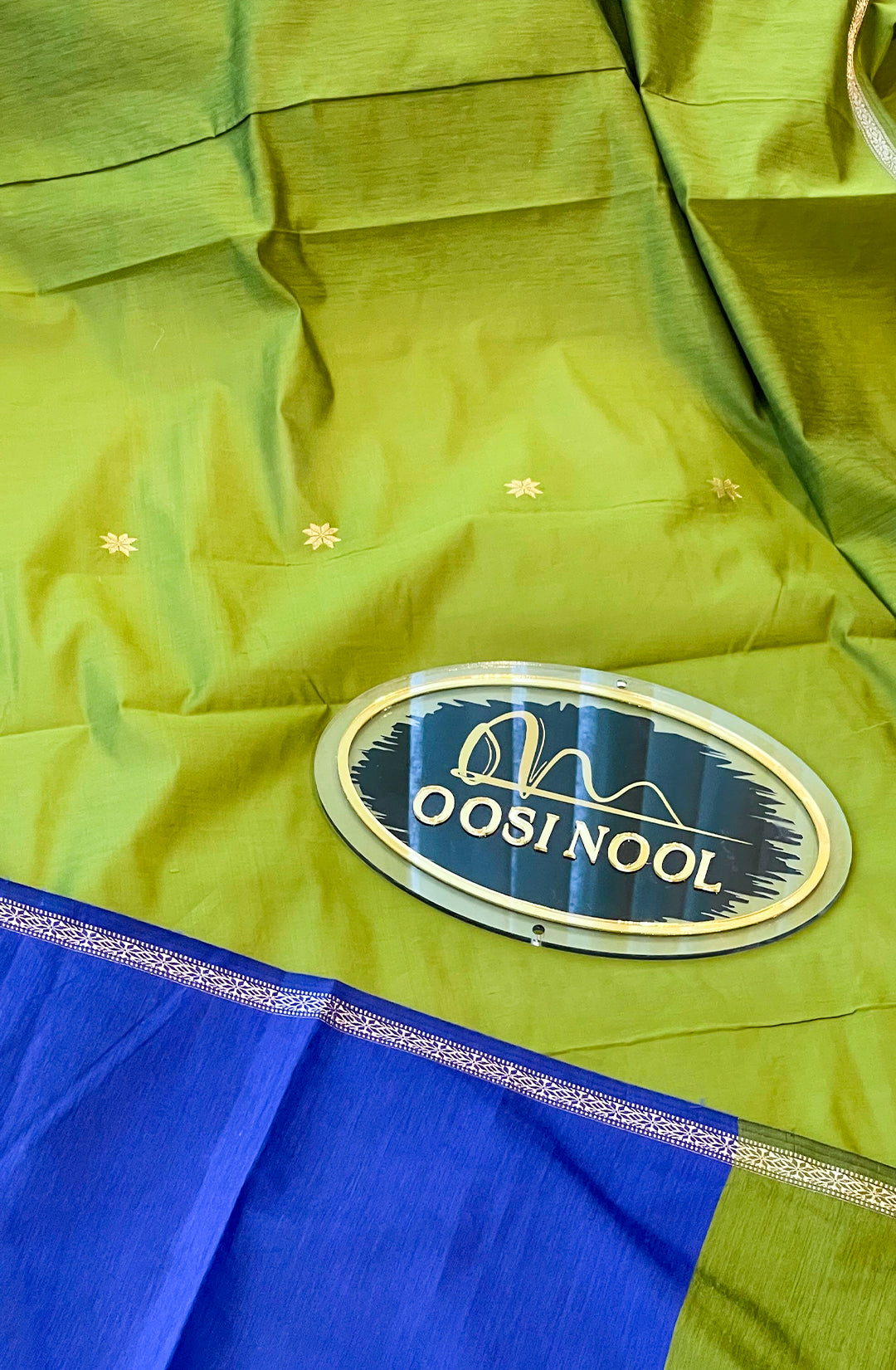 Crafted from premium Mangalagiri cotton, this saree blends tradition with everyday elegance. The delicate silver buttas add a subtle charm, while the contrast pallu creates a striking finish. Lightweight and breathable, it's perfect for effortless draping, making it a versatile choice for work, festive occasions, and casual outings.