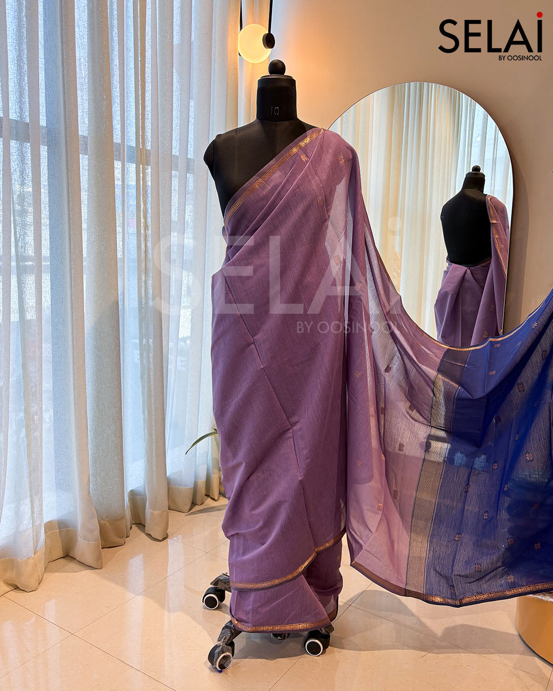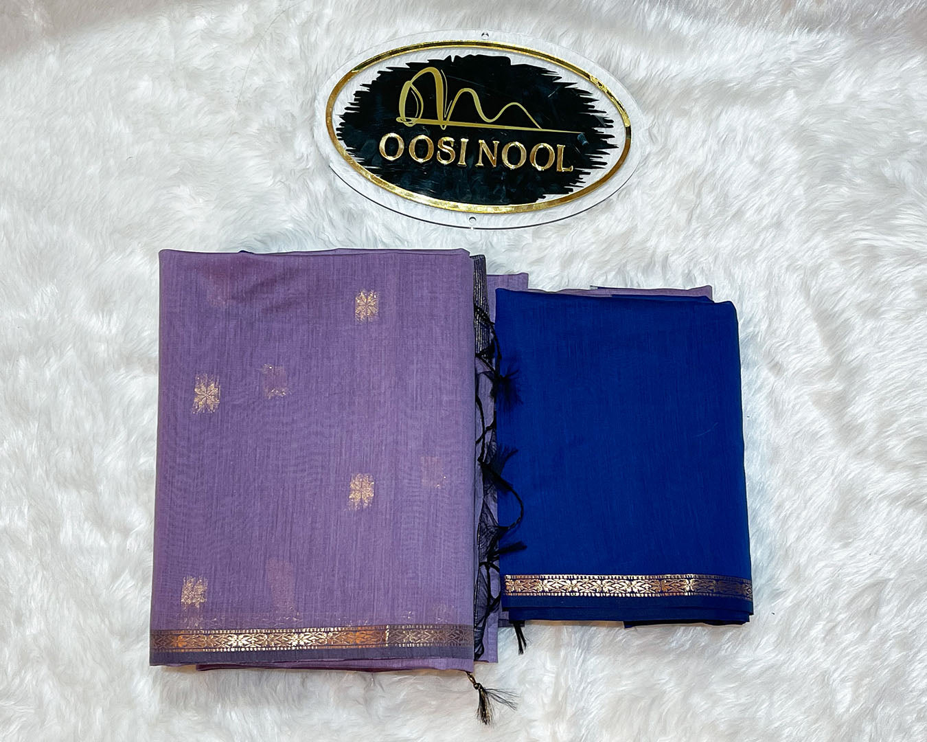 Mangalagiri Cotton Saree (Lavender with Dark Blue)