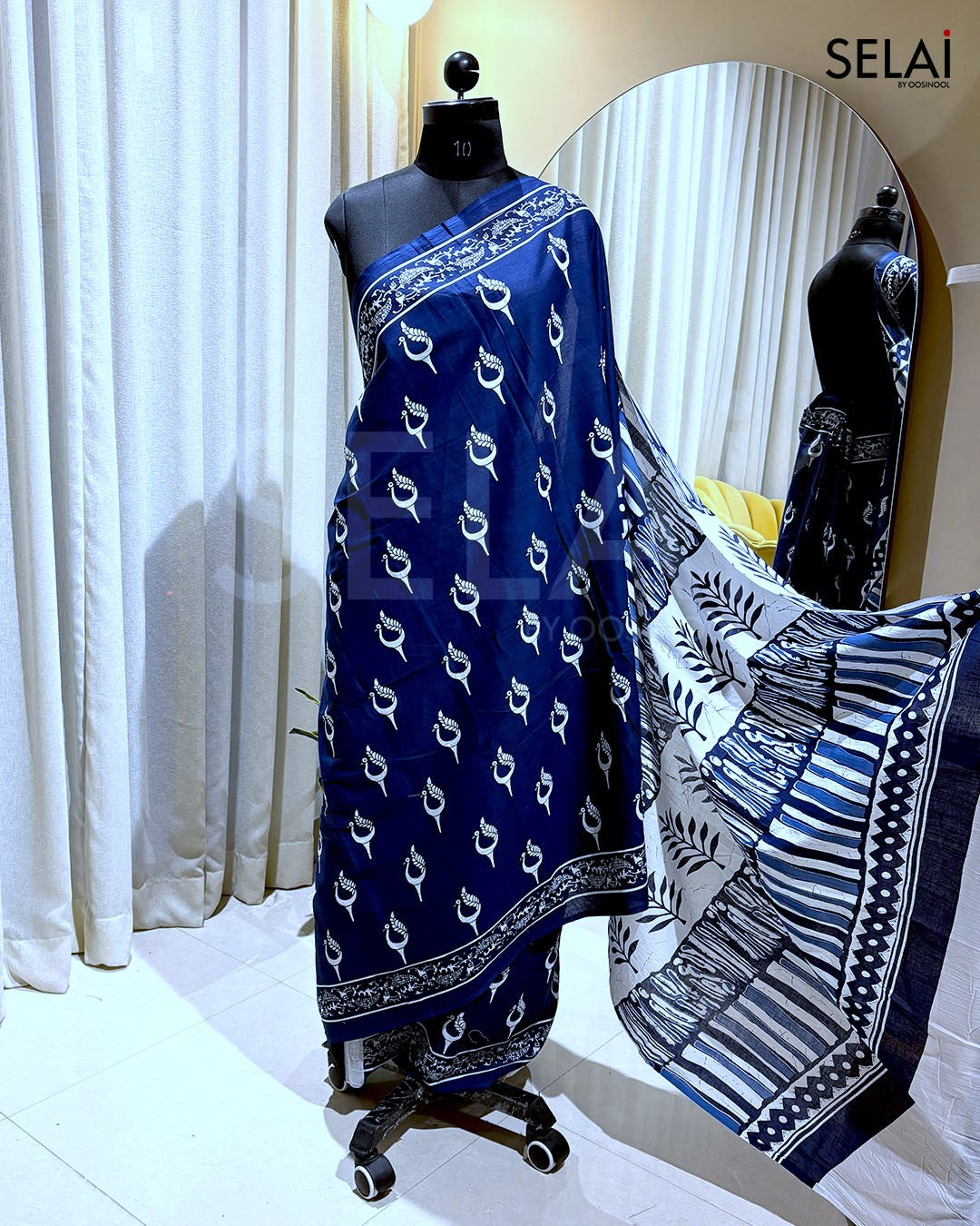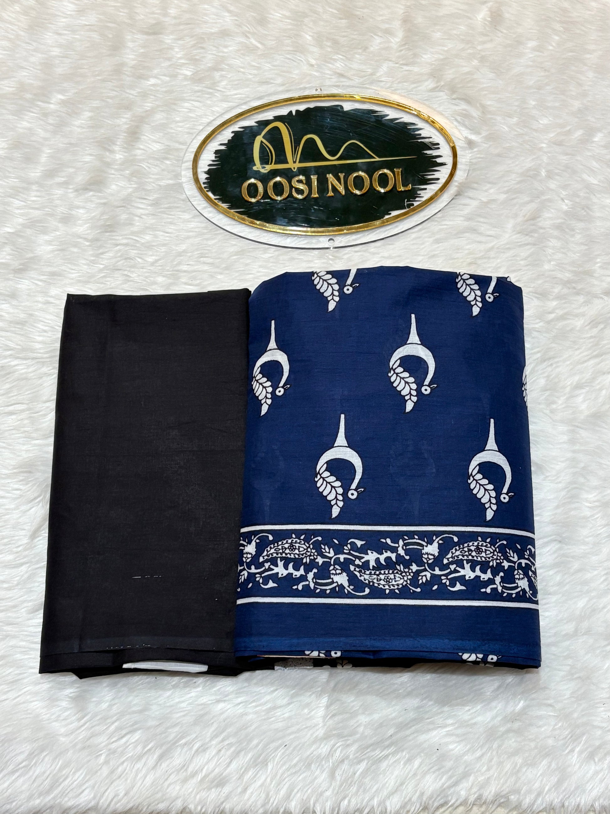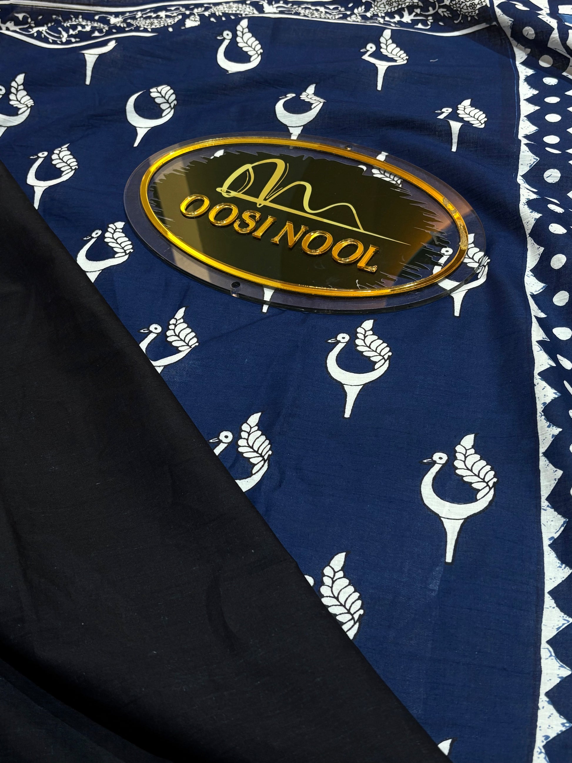 Soft on the skin and easy to drape, this Navy Blue Peacock Design Cotton Saree is made for daily wear. The hand-block design keeps it classic, while the Peacock design adds a cheerful edge. Light, airy, and fuss-free — perfect for your 9 to 5 or a stroll to the market.