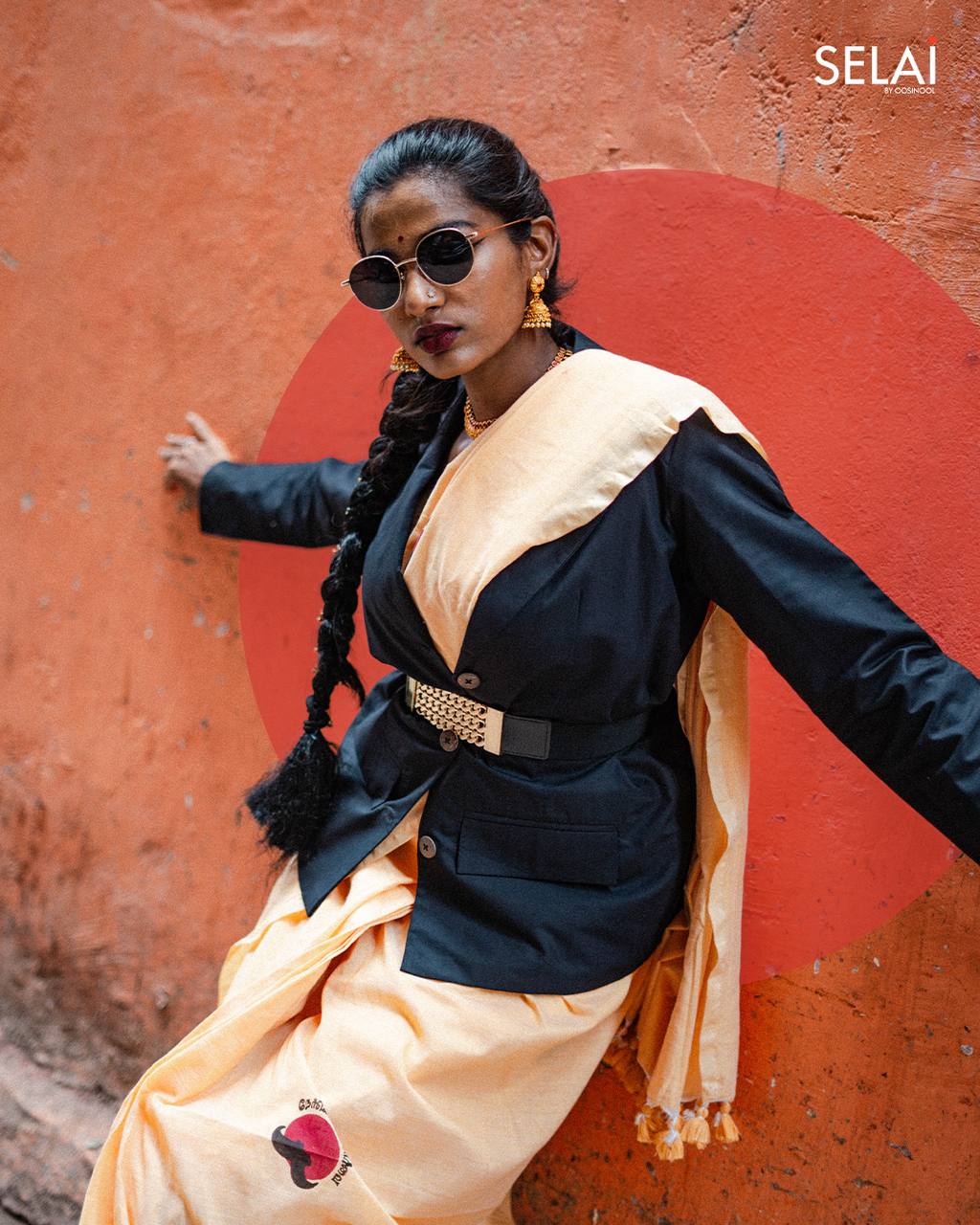 This ready-to-wear saree draws strength from the phrase “Nerkonda Paarvai”—a bold, unblinking gaze that dares the world to look back. It’s not just about how you walk, but how you see, stand, and stay true. Crafted in breathable Khadi cotton with striking hand block prints, this drape moves with quiet confidence and deep-rooted pride.