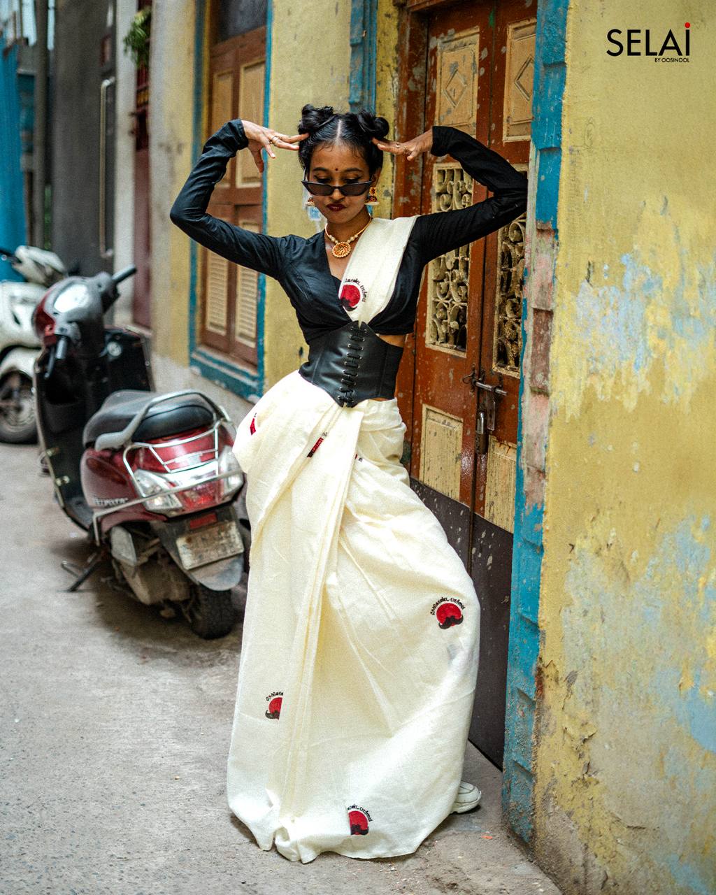 This ready-to-wear saree draws strength from the phrase “Nerkonda Paarvai”—a bold, unblinking gaze that dares the world to look back. It’s not just about how you walk, but how you see, stand, and stay true. Crafted in breathable Khadi cotton with striking hand block prints, this drape moves with quiet confidence and deep-rooted pride.