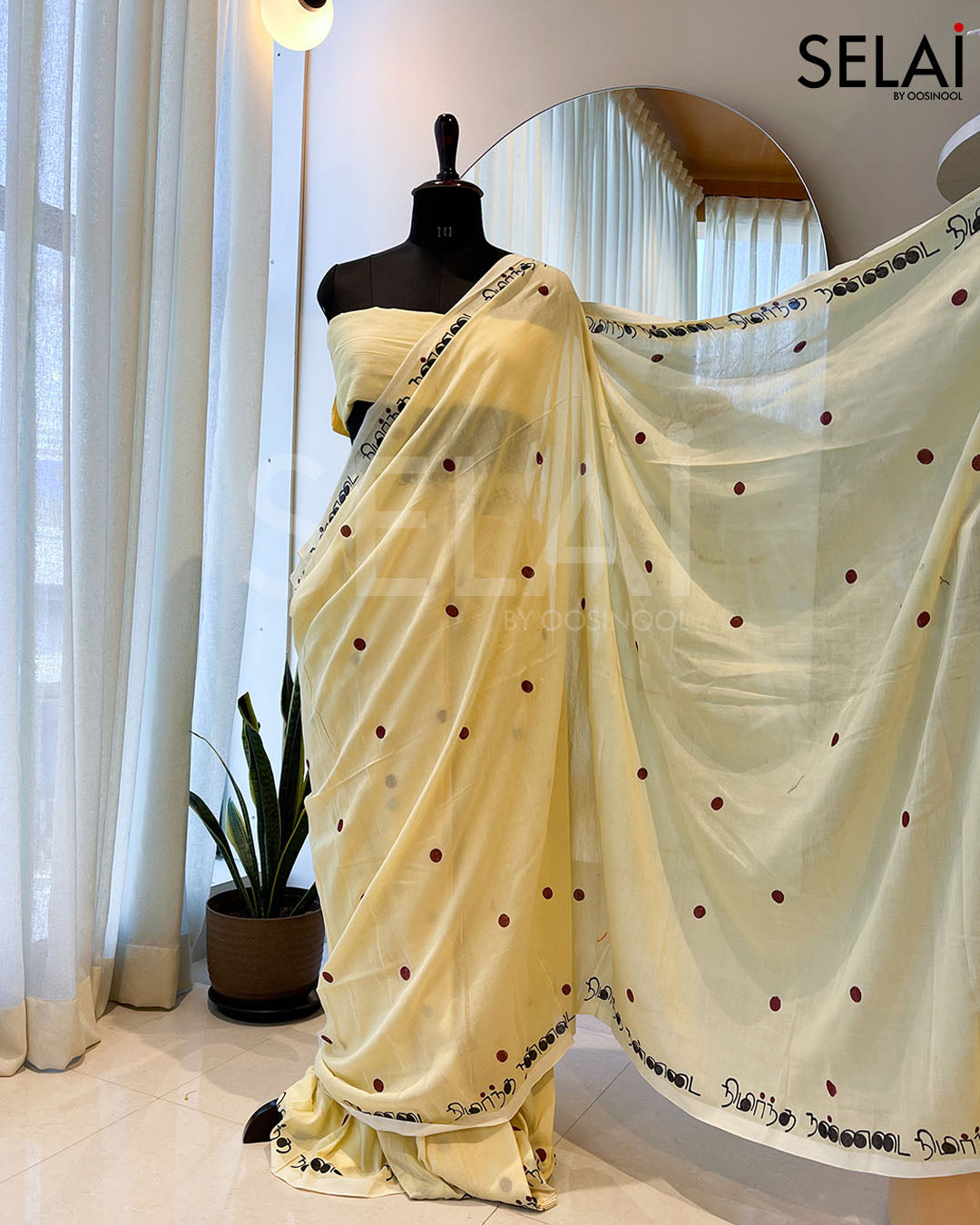 This Khadi cotton saree brings Bharathiyar’s words to life—“Nimirndha Nannadai”— which means an upright, fearless walk that reflects inner strength, shaped by our roots and culture. And through hand block printing that wears like a gentle roar. Light, breathable, and quietly powerful, it's made for comfort and courage.
