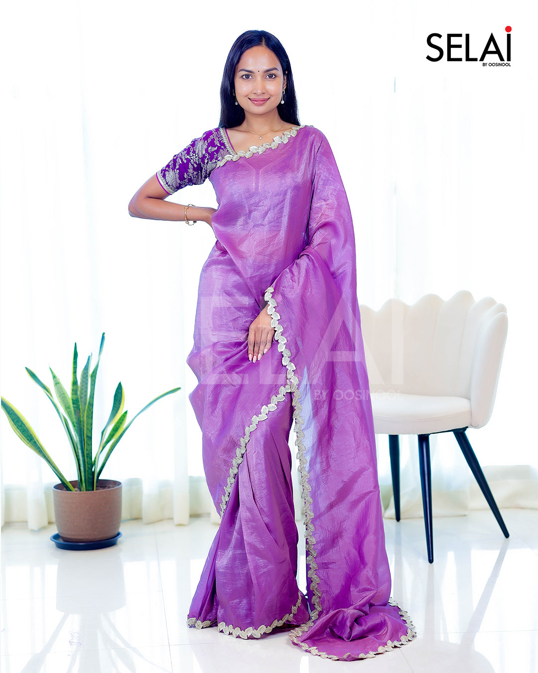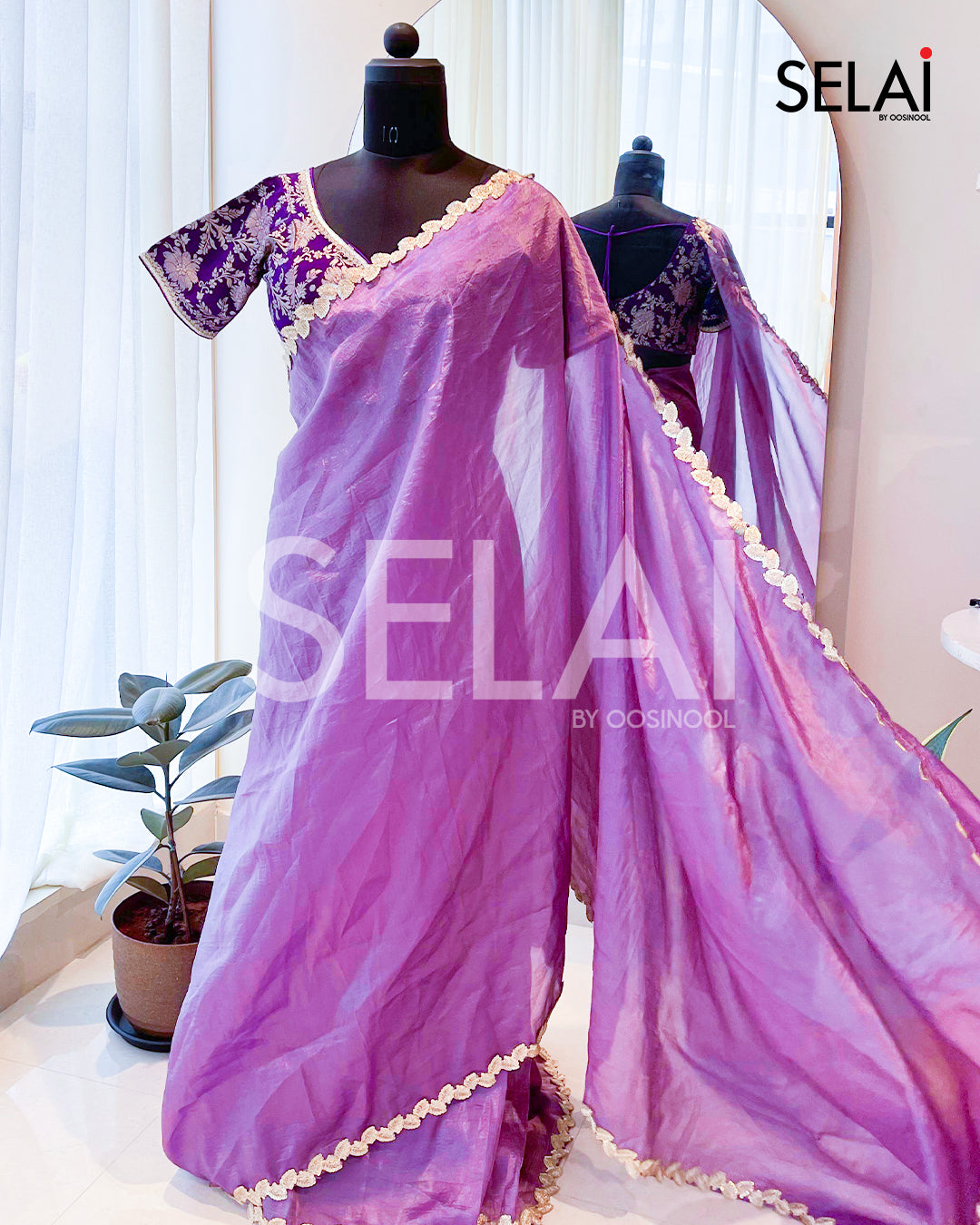 Elevate your wardrobe with our Organza Saree, featuring a refined gold lace border that adds a touch of elegance to its sheer, lightweight fabric. Perfect for weddings, evening parties, and graceful celebrations, this saree offers a sophisticated yet effortless look.