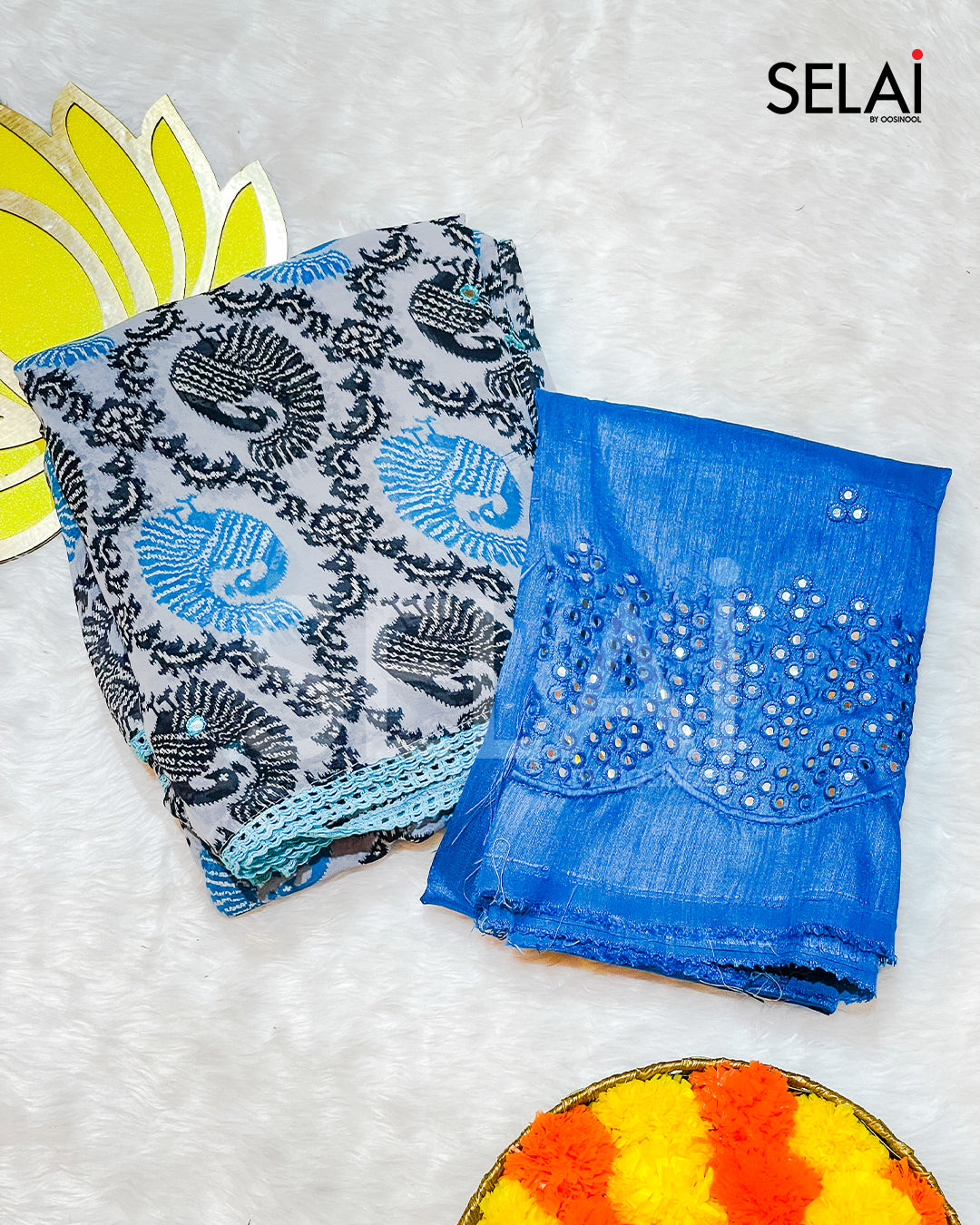 - Blouse Fabric: Semi raw silk with mirror embroidery (Unstitched)