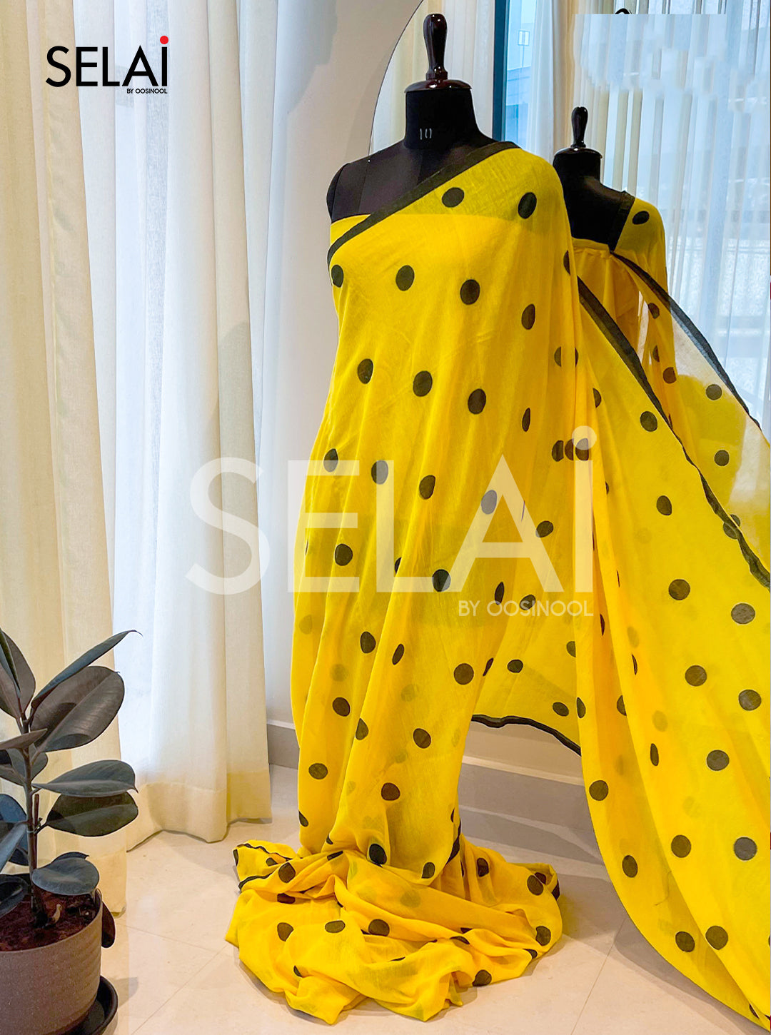 Polka Dot Mulmul Cotton Saree (Yellow)