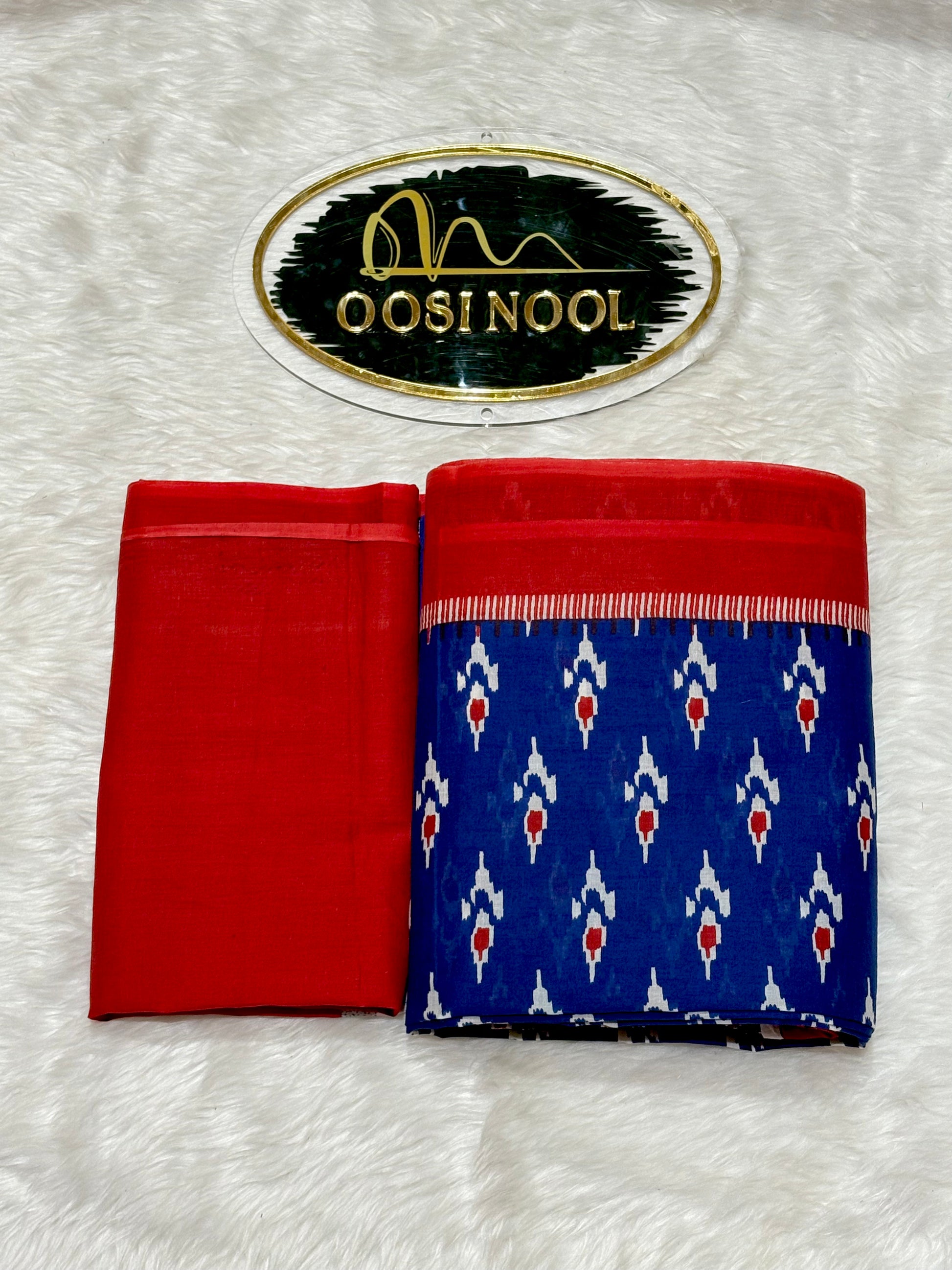 Soft on the skin and easy to drape, this Printed Blue with Red Border Cotton Saree is made for daily wear. The hand-block design keeps it classic, while the border adds a cheerful edge. Light, airy, and fuss-free — perfect for your 9 to 5 or a stroll to the market.